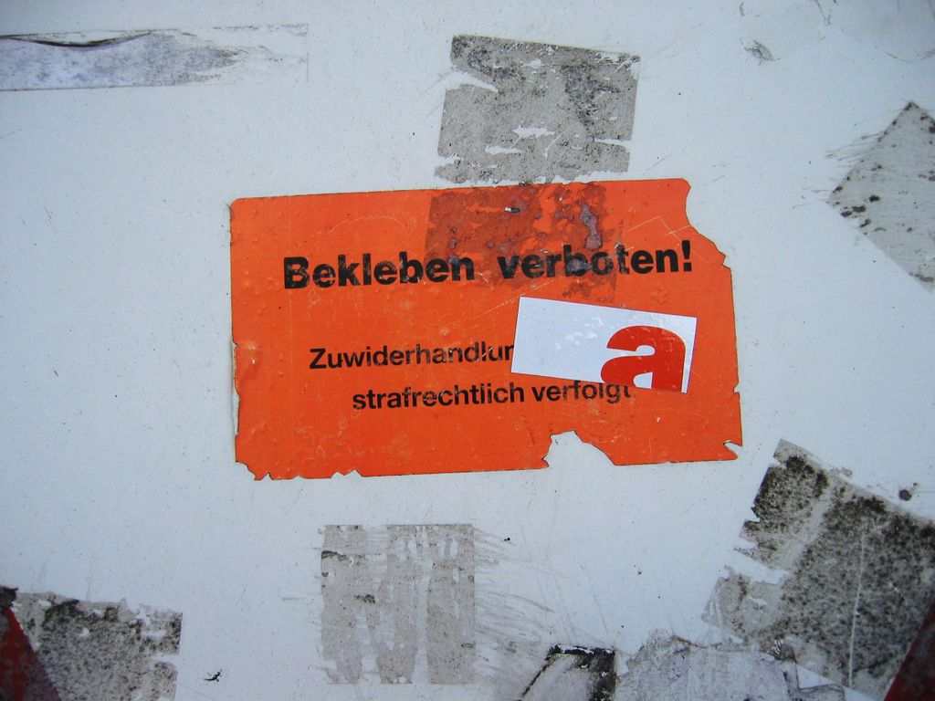 Das nebenstehende Bild zeigt eine eher witzige Form, solchen Wildplakatieren zu begegnen: man klebt selber einen Aufkleber hin, der das Bekleben verbietet - eigentlich paradox, oder nicht? Allzu fruchtbar scheint dieser Versuch aber nicht gewesen zu sein, arte hat gleich mal gegenplakatiert :)