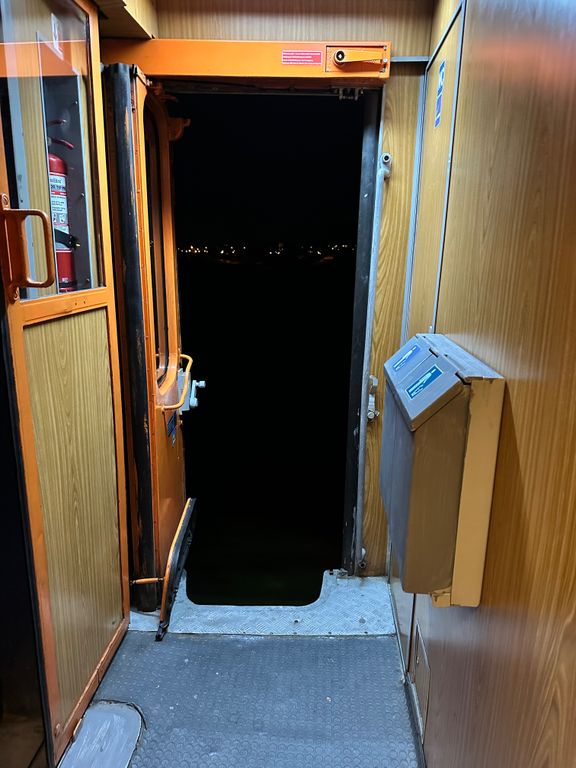 Dafür fuhr der Wagen nachts mit komplett geöffneten Türen durch Rumänien. Die Toilettentür direkt neben der Wagentür ist im schlaftrunkenen. Zustand dann auch ein wenig gefährlich…