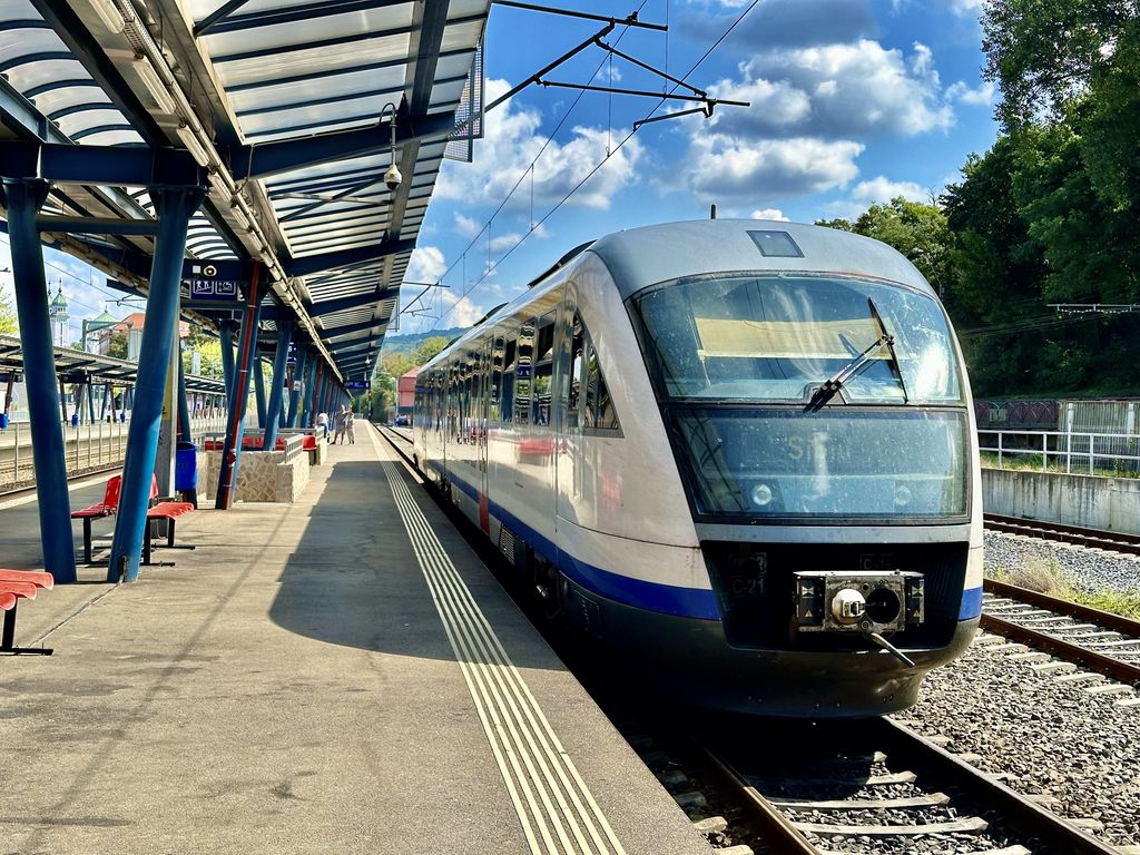 Andere deutsche Überreste haben wir am Bahnhof gefunden: dort verkehren Dieseltriebwagen, wie sie zum Beispiel die Südostbayernbahn nach wie vor rings um Mühldorf einsetzen und woher dieses Fahrzeug vermutlich auch stammt. Sogar der originale Fahrkartenautomat der Deutschen Bahn war im Fahrzeug noch vorhanden.
